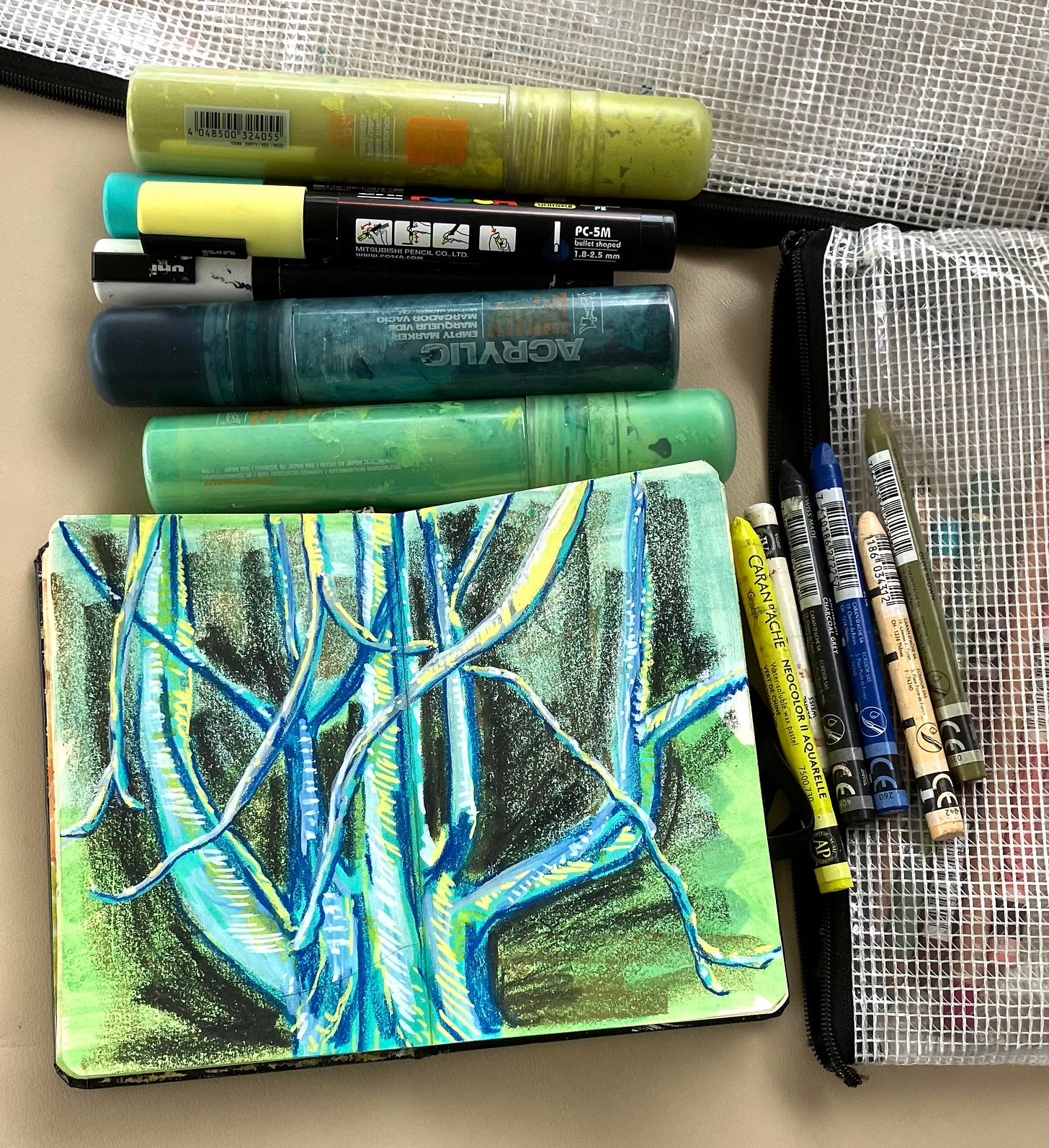 I chose trees for this month’s theme months ago because trees are part of my support network. Maybe they are for you too? If you feel like you are carrying a lot more worry and fear right now, maybe you’ll want to spend the next few weeks (months, years) in a practice of coming back to what supports your nervous system. I plan to use the collection of references below one at a time to explore textures, light, shape, characters, environments to play, be in the materials and practice spending more time in details (something I struggle with but want more of in my work). My aim is to simply find joy and let my grief just be present in the nourishing presence of the tress.