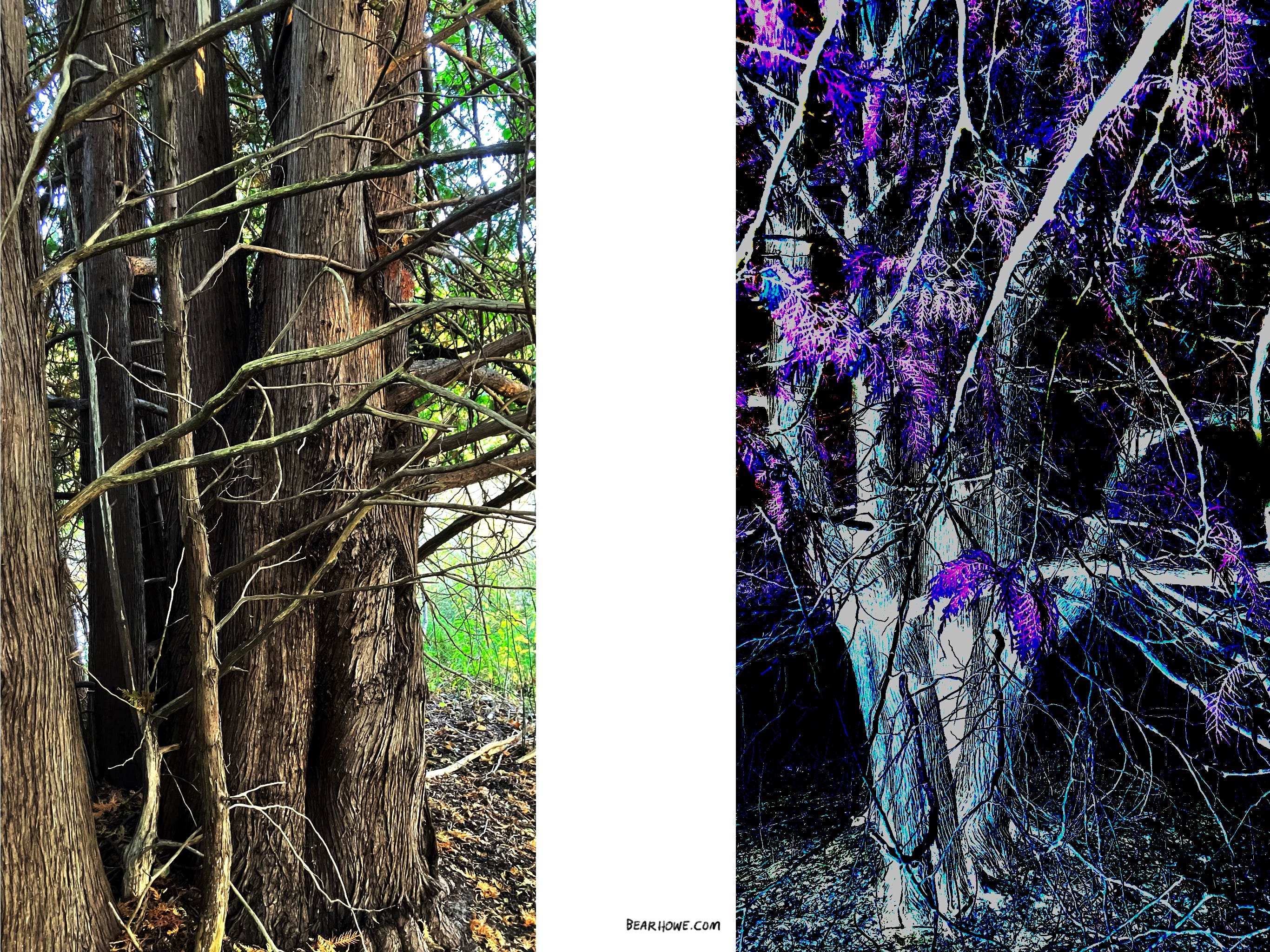 This email is meant to nudge you into making tree art with me. All the way at the bottom are a bunch of prompts—skip to there if you want to jump right in! I’ve made dramatic modifications to some of my photos to help us see shape, texture, light, negative space and movement in more contrast!