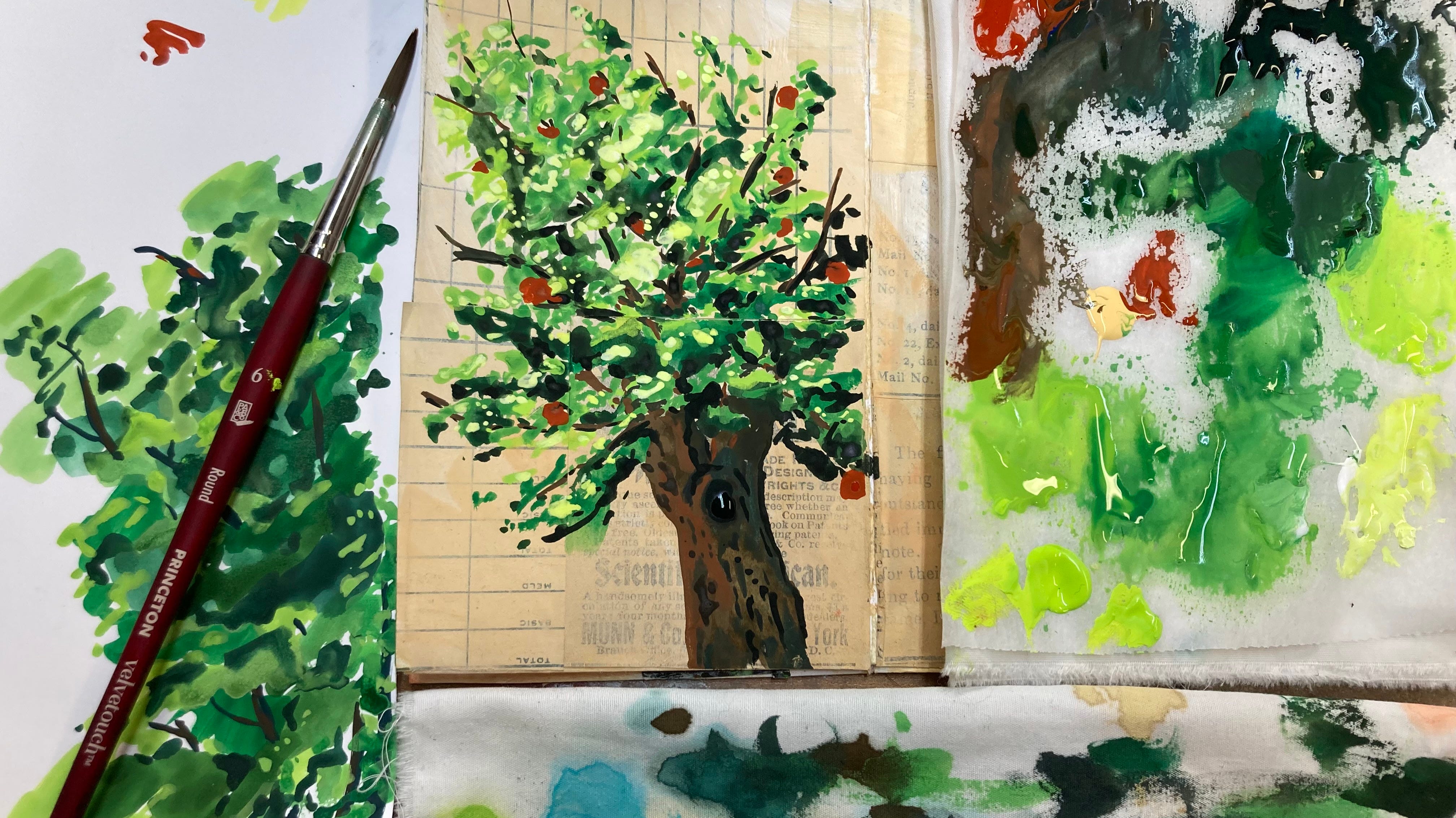 Paint an apple tree with me in Acrylic Gouache